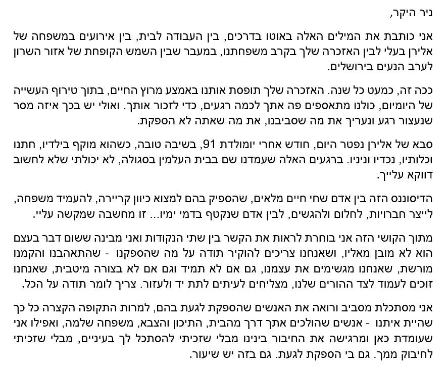 דברי הספד מפי נירית