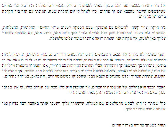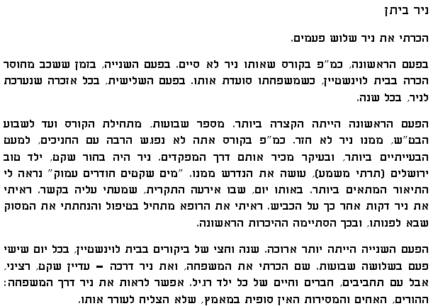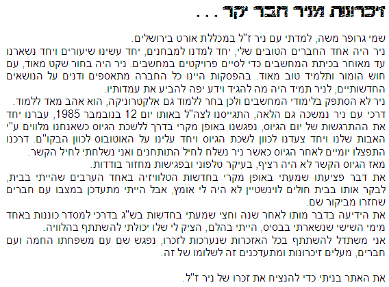 נירית ביטון, בת דודו של ניר ז"ל ונקראת על שמו – כמידי שנה נאמרים על ידה דברי הספד מרגשים